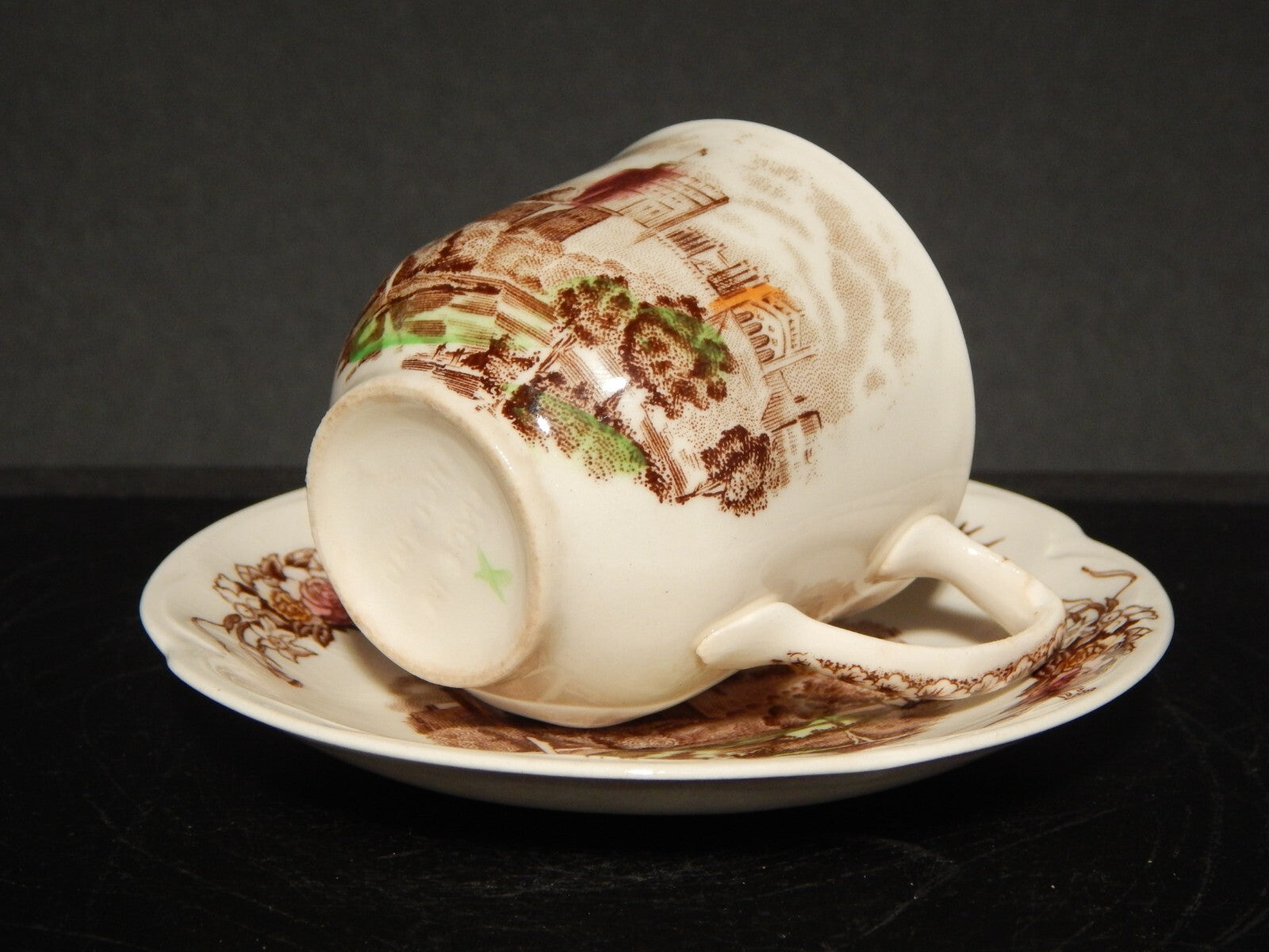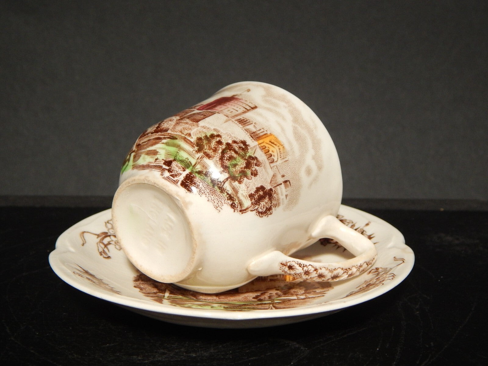 In questa inserzione viene presentata una tazzina da caffè antica con relativo piattino realizzata dalla famosa Manifattura inglese Johnson Bros della collezione Royal Homes of Britain