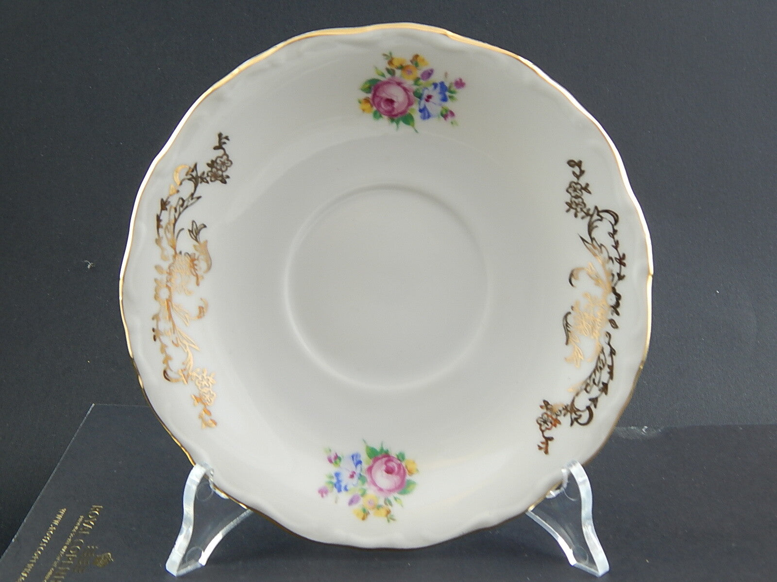 ROCAILLE ANTICA TAZZA CON PIATTO COLAZIONE PORCELLANA BIANCA DECORO ORO BOEMA