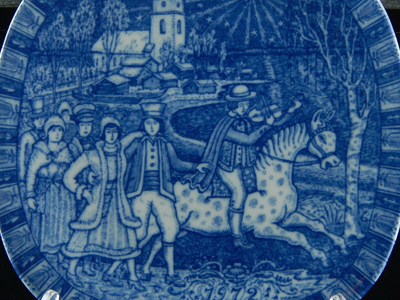Il piatto di natale 1972 è il quinto della serie di famosi piatti di Natale della Rorstrand iniziata nel 1968. Il motivo ornamentale è stato realizzato con diverse sfumature di blu applicate sottosmalto. Il disegno è opera di Gunnar Nylund.