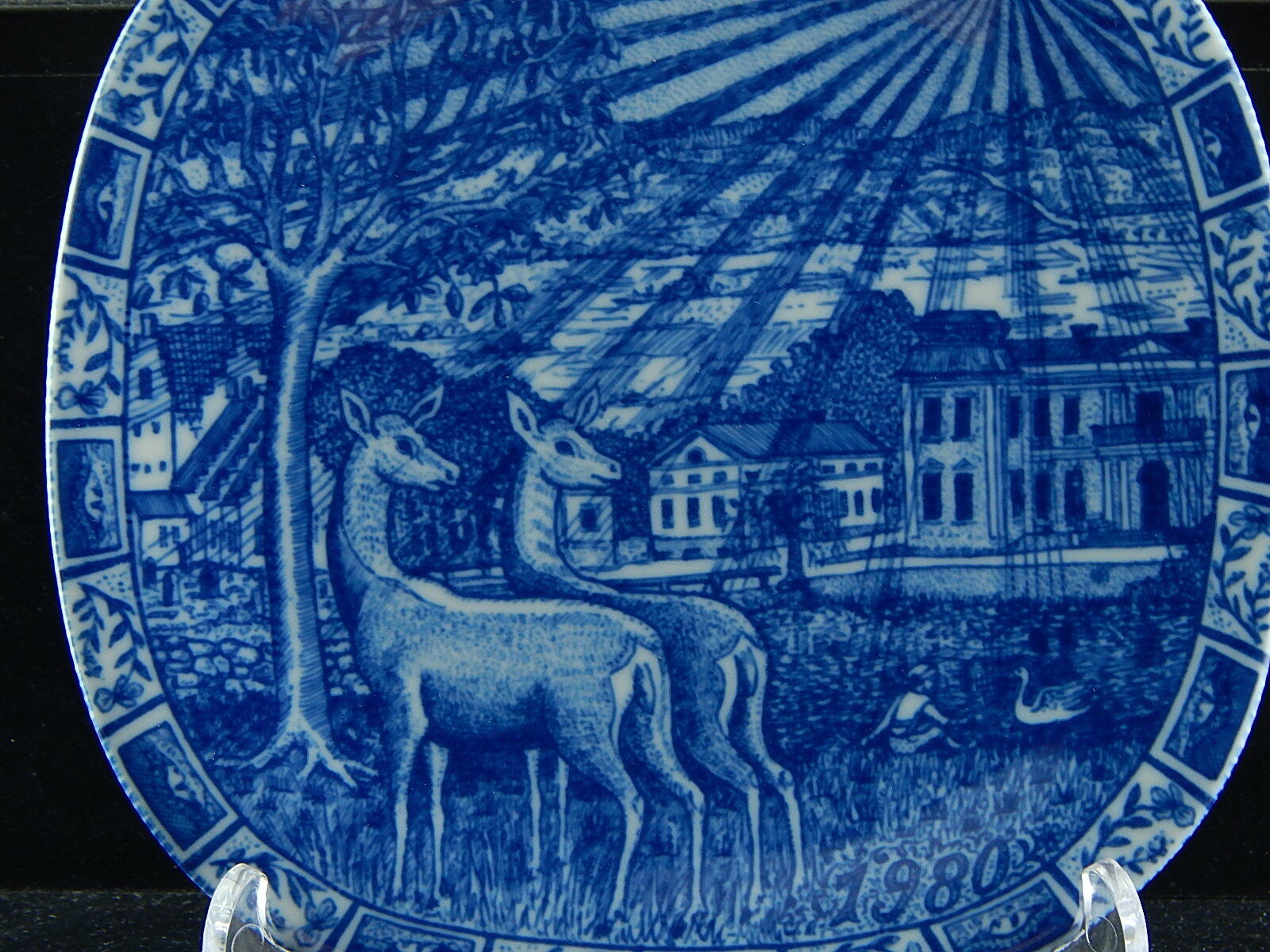 Il piatto di natale 1980 è il 13^ della serie di famosi piatti di Natale della Rorstrand iniziata nel 1968. Il motivo ornamentale è stato realizzato con diverse sfumature di blu applicate sottosmalto. Il disegno è opera di Gunnar Nylund.