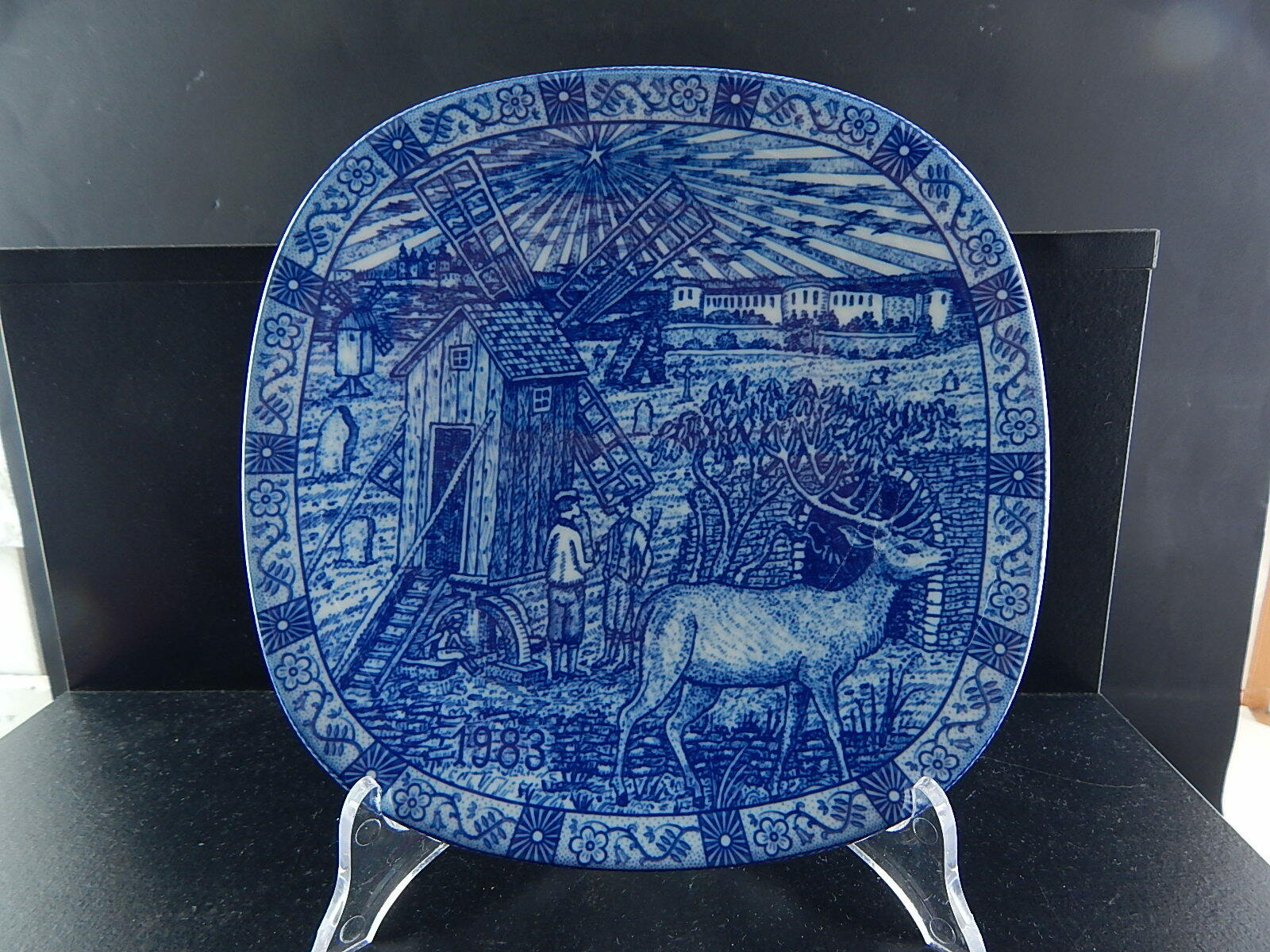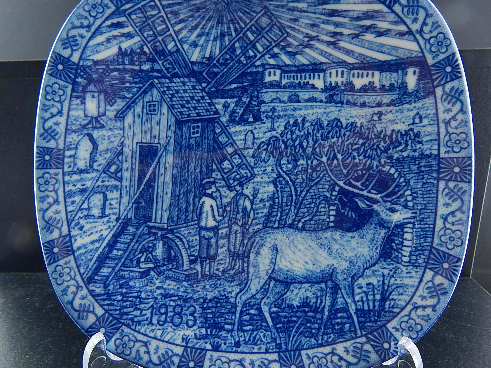 Il piatto di natale 1983 è il 16^della serie di famosi piatti di Natale della Rorstrand iniziata nel 1968. Il motivo ornamentale è stato realizzato con diverse sfumature di blu applicate sottosmalto. Il disegno è opera di Gunnar Nylund.