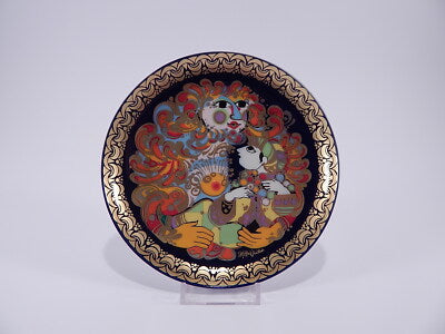 Il piatto è stato prodotto in edizione limitata. E' stato realizzato in porcellana e poi decorato a mano soprasmalto con colori accesi, oro e argento. Il piatto misura 15 cm. di diametro.
