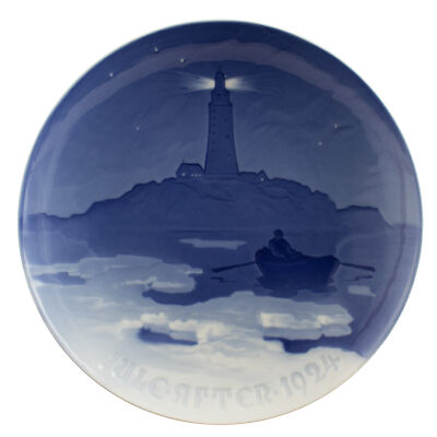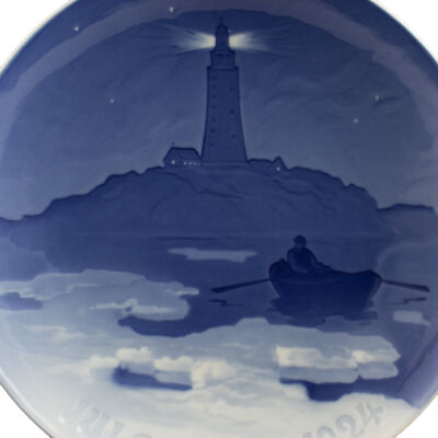 Il piatto di Natale del 1924 è il 30° della serie di famosi piatti Bing&Grondahl ed è intitolato “Lighthouse in Danish Waters”. Il motivo ornamentale è in rilievo e il piatto è decorato a mano nelle classiche sfumature blu cobalto applicate sottosmalto.