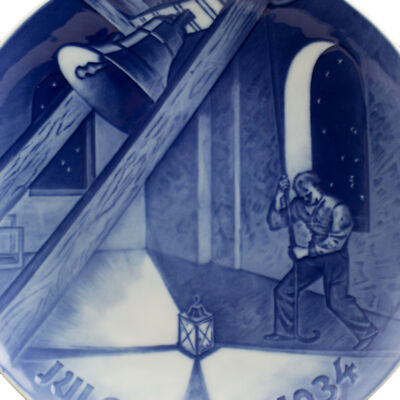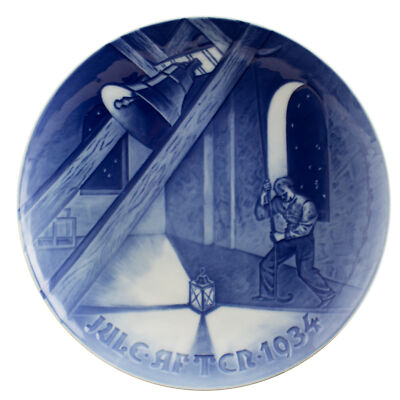 Il piatto di Natale del 1934 è il 40° della serie di famosi piatti Bing&Grondahl ed è intitolato “Church Bell in Tower”. Il motivo ornamentale è in rilievo e il piatto è decorato a mano nelle classiche sfumature blu cobalto applicate sottosmalto.