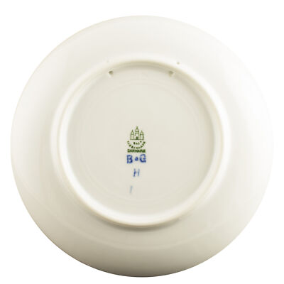 A garanzia di autenticità il piatto reca il marchio della Bing&Grondahl con le tre torri, ispirato allo stemma della città di Copenhagen, e le iniziali del pittore.