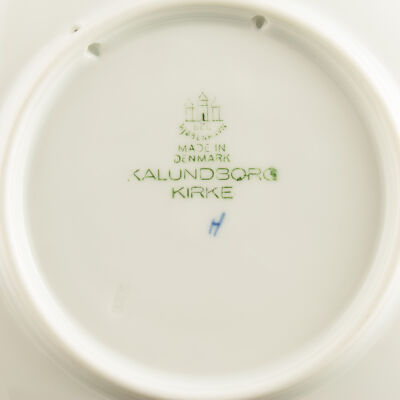 A garanzia di autenticità il piatto reca il marchio della Bing&Grondahl con le tre torri, ispirato allo stemma della città di Copenhagen, e le iniziali del pittore.