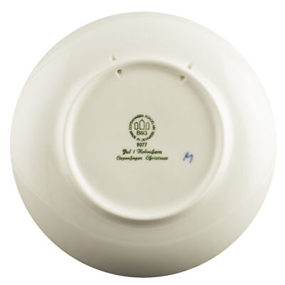 A garanzia di autenticità il piatto reca il marchio della Bing&Grondahl con le tre torri, ispirato allo stemma della città di Copenhagen, e le iniziali del pittore.