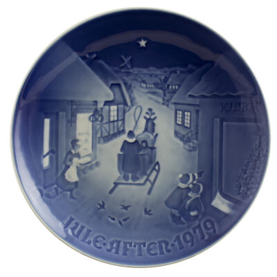 Il piatto di Natale del 1979 è il 85° della serie di famosi piatti Bing&Grondahl ed è intitolato “White Christmas”. Il motivo ornamentale è in rilievo e il piatto è decorato a mano nelle classiche sfumature blu cobalto applicate sottosmalto.