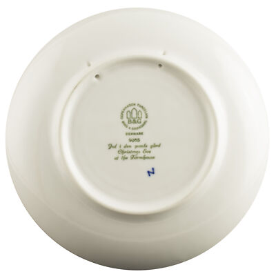 Il piatto di Natale del 1985 è il 91° della serie di famosi piatti Bing&Grondahl ed è intitolato “Christmas Eve at the Farmhouse”. Il motivo ornamentale è in rilievo e il piatto è decorato a mano nelle classiche sfumature blu cobalto applicate sottosmalto.