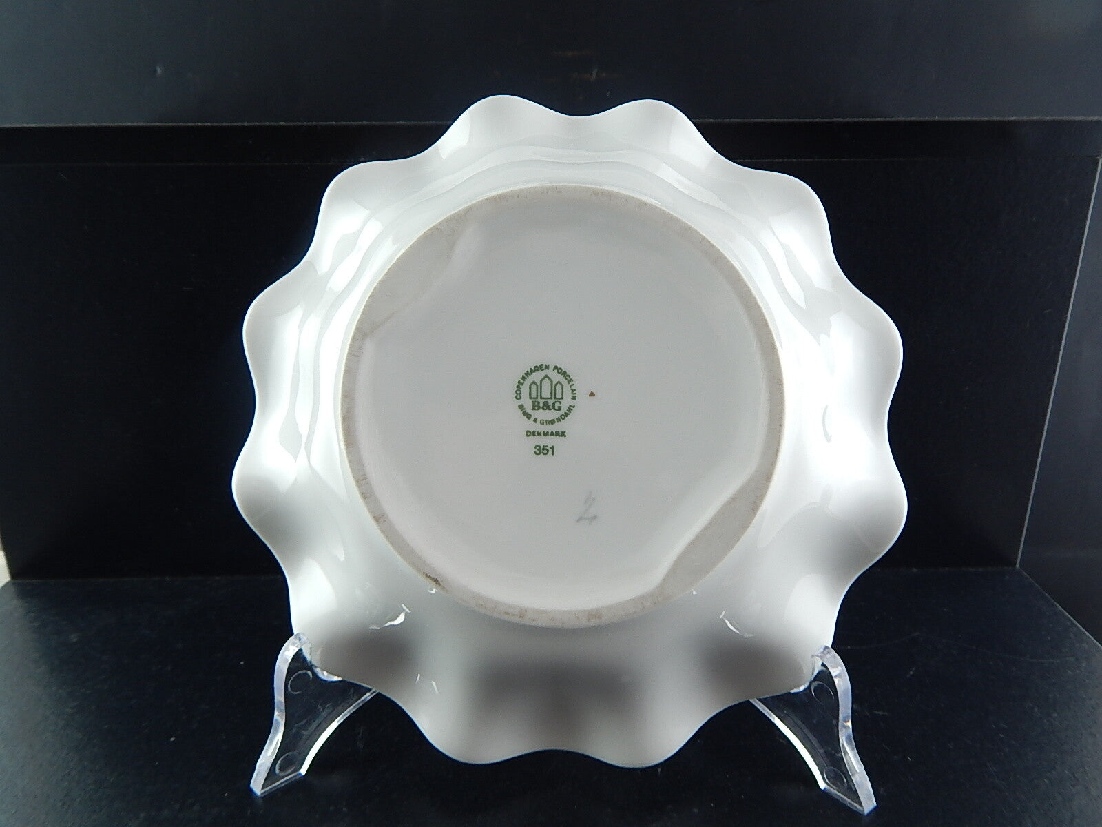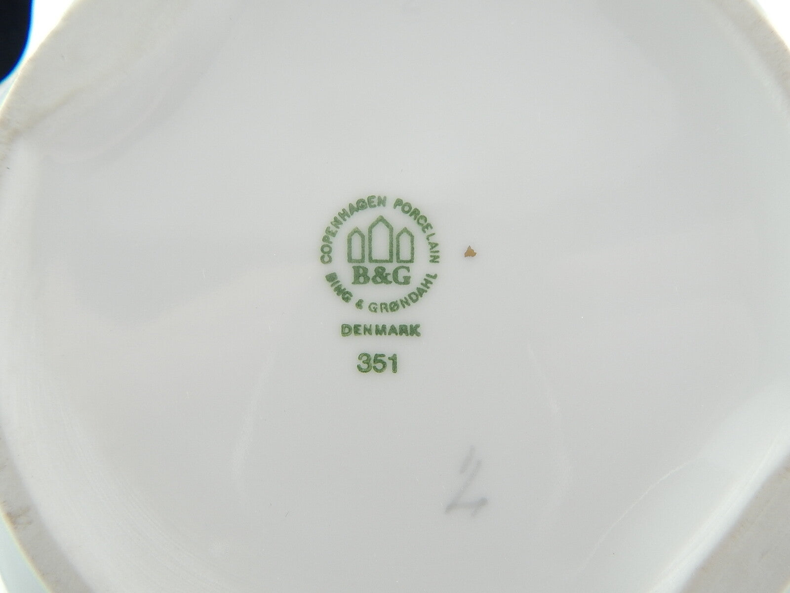 A garanzia di autenticità la lattiera reca il marchio della Royal Copenhagen, la Corona sopra le tre Linee Ondulate, e le iniziali del pittore.