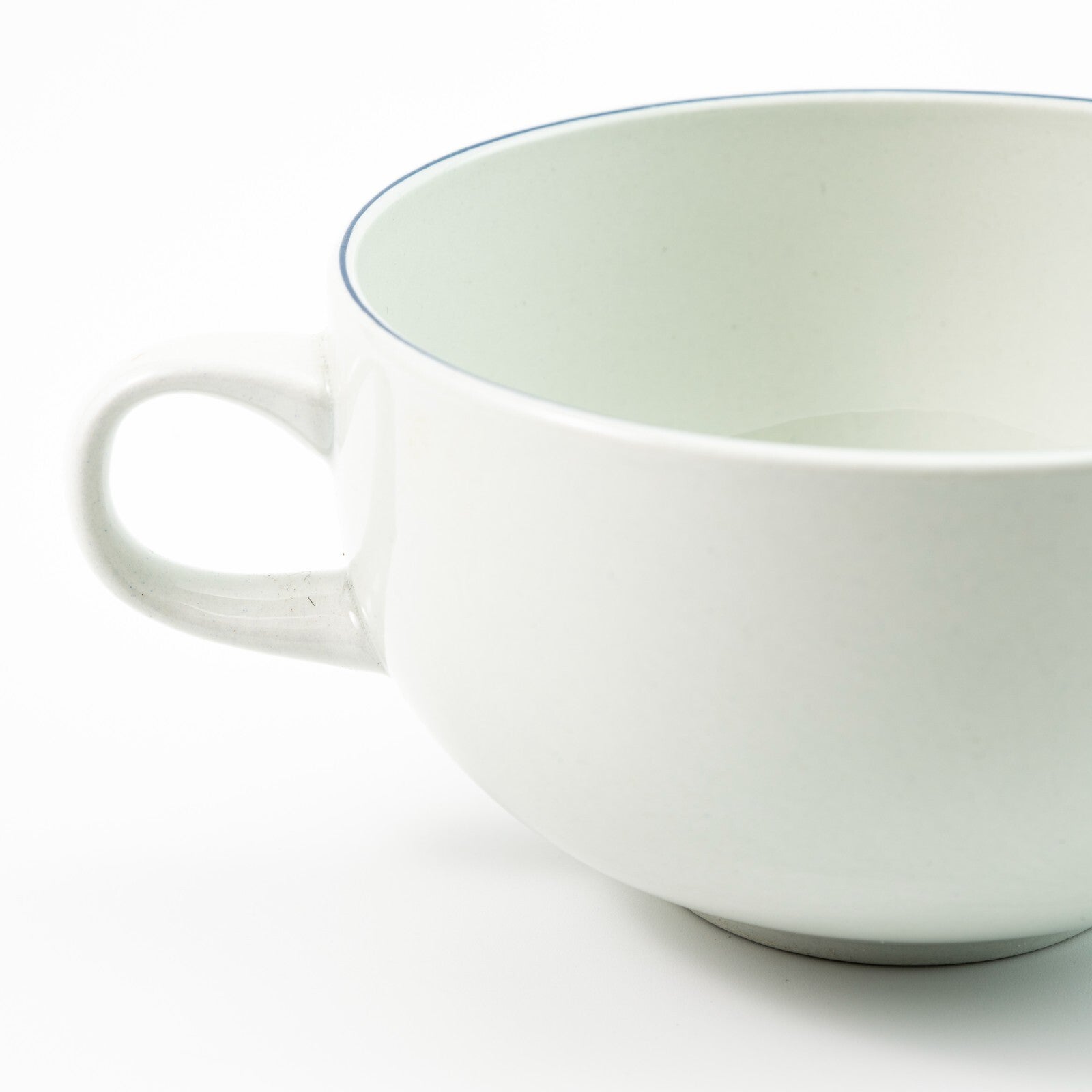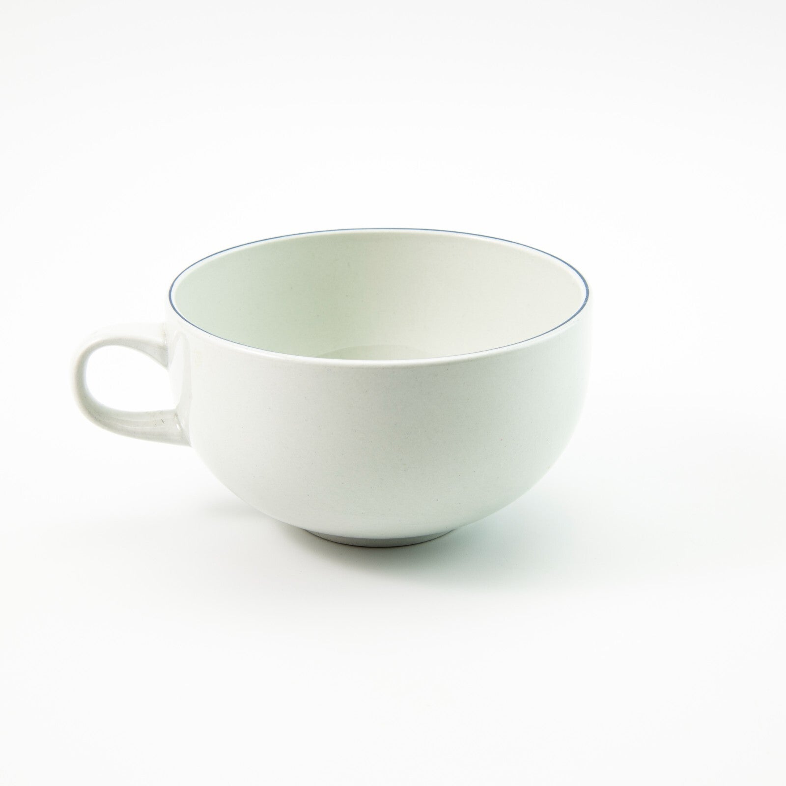 Tazza da tè in ceramica con linea blu disegnata dalla designer danese Grethe Meyer per la Royal Copenhagen.
