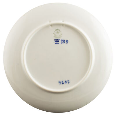 A garanzia di autenticità il piatto reca il marchio della Royal Copenhagen, la Corona sopra le tre Linee Ondulate e le iniziali del pittore.