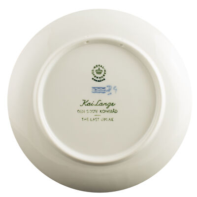 A garanzia di autenticità il piatto reca il marchio della Royal Copenhagen, la Corona sopra le tre Linee Ondulate e le iniziali del pittore.