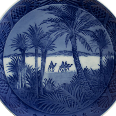 Il piatto di Natale in porcellana del 1972 è il 65° della serie di famosi piatti Royal Copenhagen ed è intitolato “In the Desert”. Il motivo riprodotto è in rilievo e il piatto è decorato a mano nelle classiche sfumature blu cobalto applicate sottosmalto.