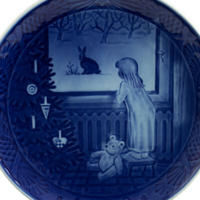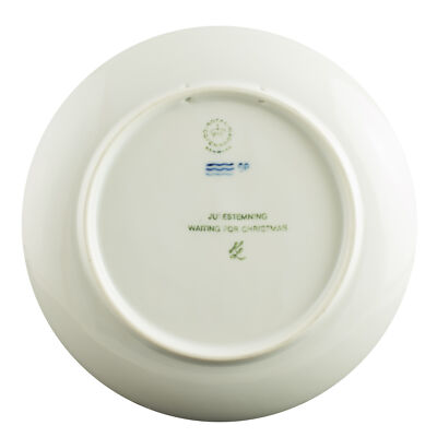 Il piatto di Natale in porcellana del 1982 è il 75° della serie di famosi piatti Royal Copenhagen ed è intitolato “Waiting for Christmas”. Il motivo riprodotto è in rilievo e il piatto è decorato a mano nelle classiche sfumature blu cobalto applicate sottosmalto.