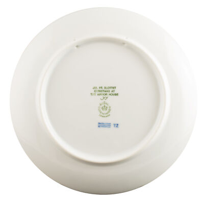Il piatto di Natale del 1995 è il 88° della serie di famosi piatti Royal Copenhagen ed è intitolato “Christmas at the Manor House”. Il motivo riprodotto è in rilievo e il piatto è decorato a mano nelle classiche sfumature blu cobalto applicate sottosmalto.