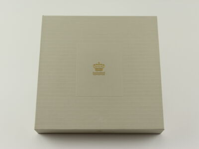 A garanzia di autenticità il piatto reca il marchio della Royal Copenhagen, la Corona sopra le tre Linee Ondulate e le iniziali del pittore.