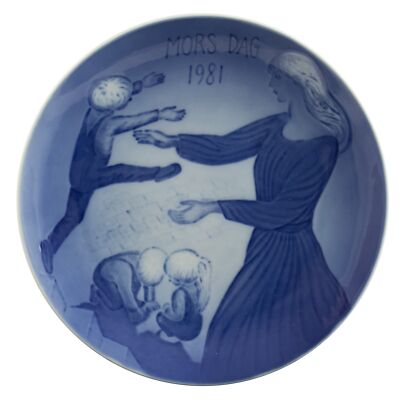 Il piatto della Festa della Mamma del 1981 è l'11° della serie di famosi piatti Royal Copenhagen della Mamma ed è intitolato “Mamma Gioca con i suoi Bambini”. Il motivo riprodotto è in rilievo e il piatto è decorato a mano nelle classiche sfumature blu cobalto applicate sottosmalto.