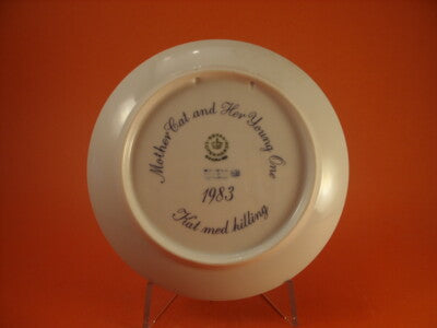 Il piatto della Festa della Mamma del 1983 è il 14° della serie di famosi piatti Royal Copenhagen della Mamma ed è intitolato “Mamma Gatto e il suo Cucciolo”. Il motivo riprodotto è in rilievo e il piatto è decorato a mano nelle classiche sfumature blu cobalto applicate sottosmalto.