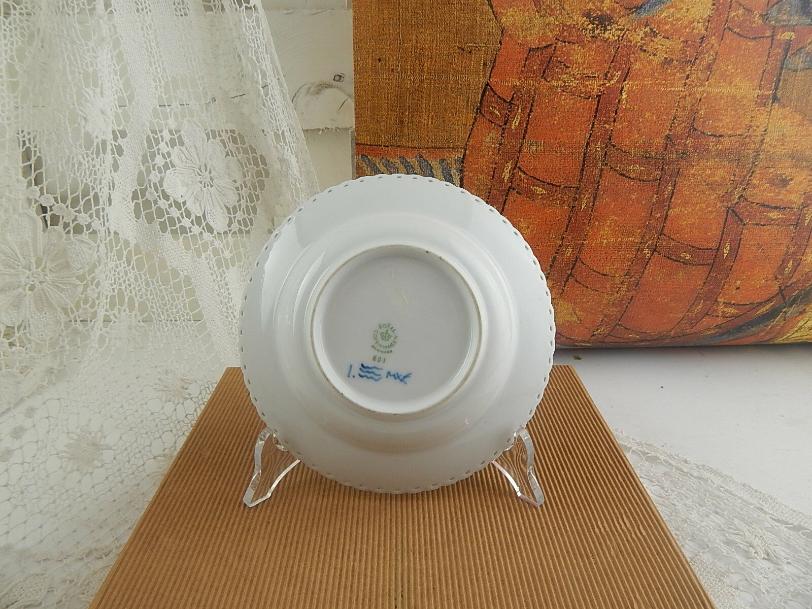 In questa inserzione viene presentata un piatto disegnato da Arnold Krog della collezione Blue Fluted Full Lace prodotto dalla Royal Copenhagen.