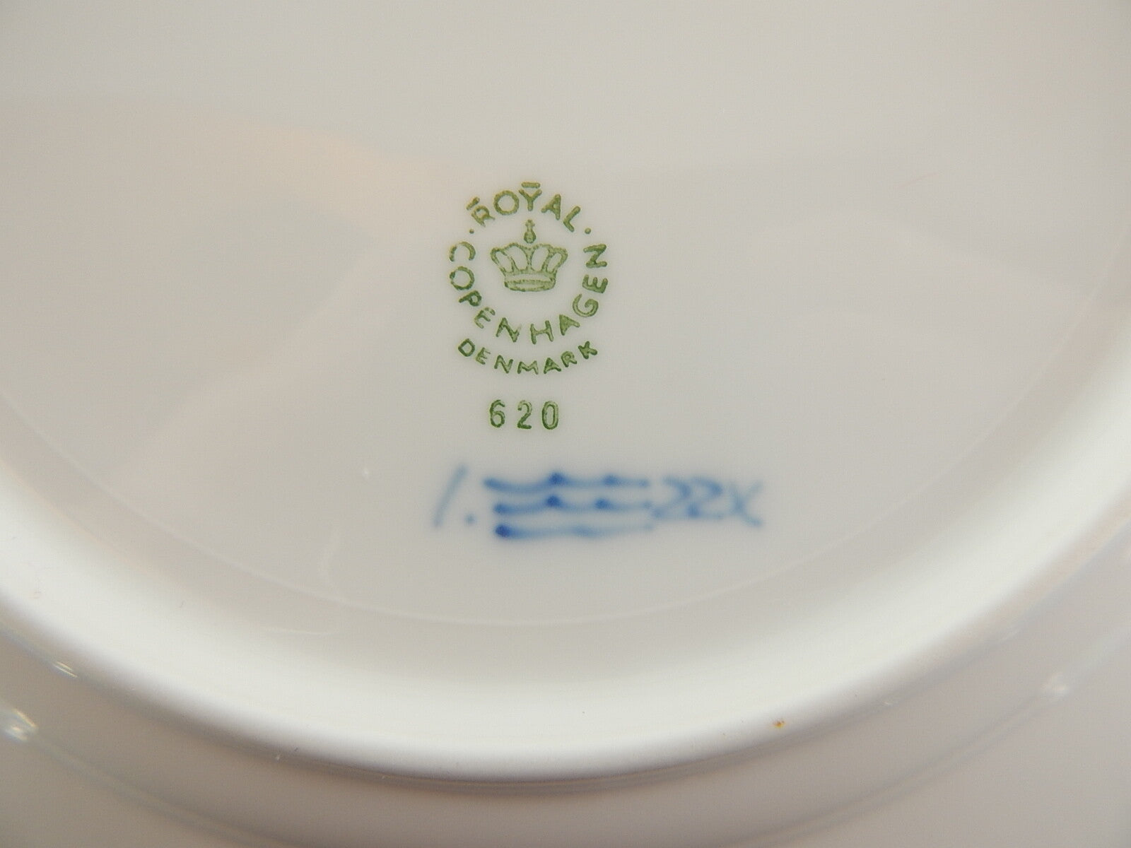 A garanzia di autenticità la lattiera reca il marchio della Royal Copenhagen, la Corona sopra le tre Linee Ondulate, e le iniziali del pittore.