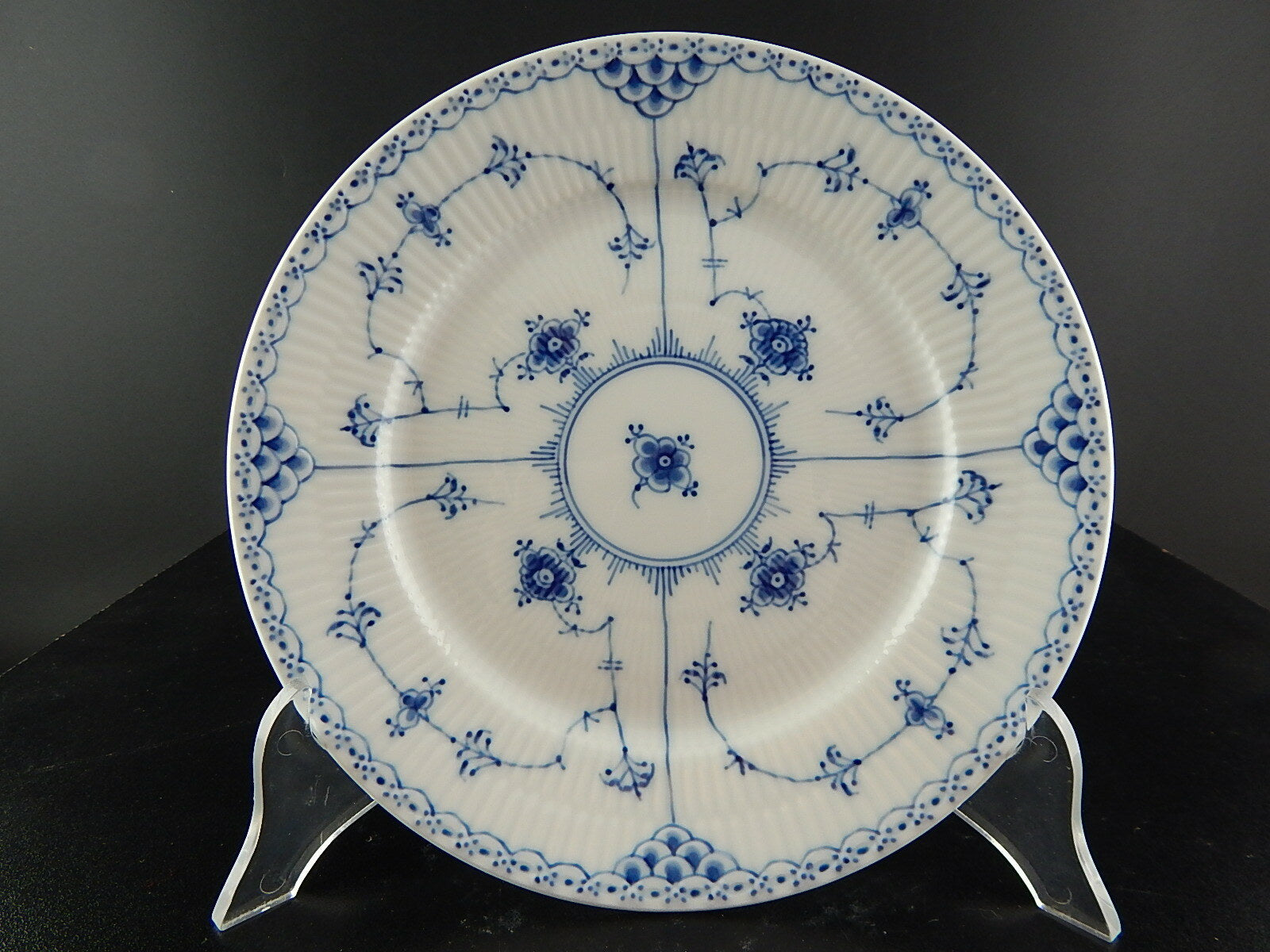 In questa inserzione viene presentata un piatto piano disegnato da Arnold Krog della collezione Blue Fluted Half Lace prodotto dalla Royal Copenhagen