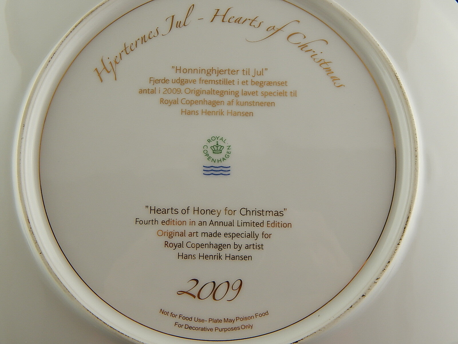 Nel 2006 la Royal Copenhagen introduce una nuova serie: "Hearts of Christmas Plate Series". Questa volta si allontana dal tradizionale colore blu per abbracciare una decorazione ricca di colori. Nel quarto piatto della serie, quello del 2009, due ragazzi aiutano Babbo Natale a preparare enormi cuori di miele al forno per Natale.