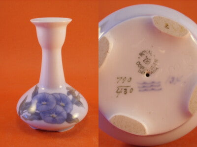 In questa inserzione viene presentato un portacandela in porcellana della Royal Copenhagen. E' stato decorato a mano sottosmalto. Come si evince dal marchio il portacandela è stato realizzato negli anni '20.