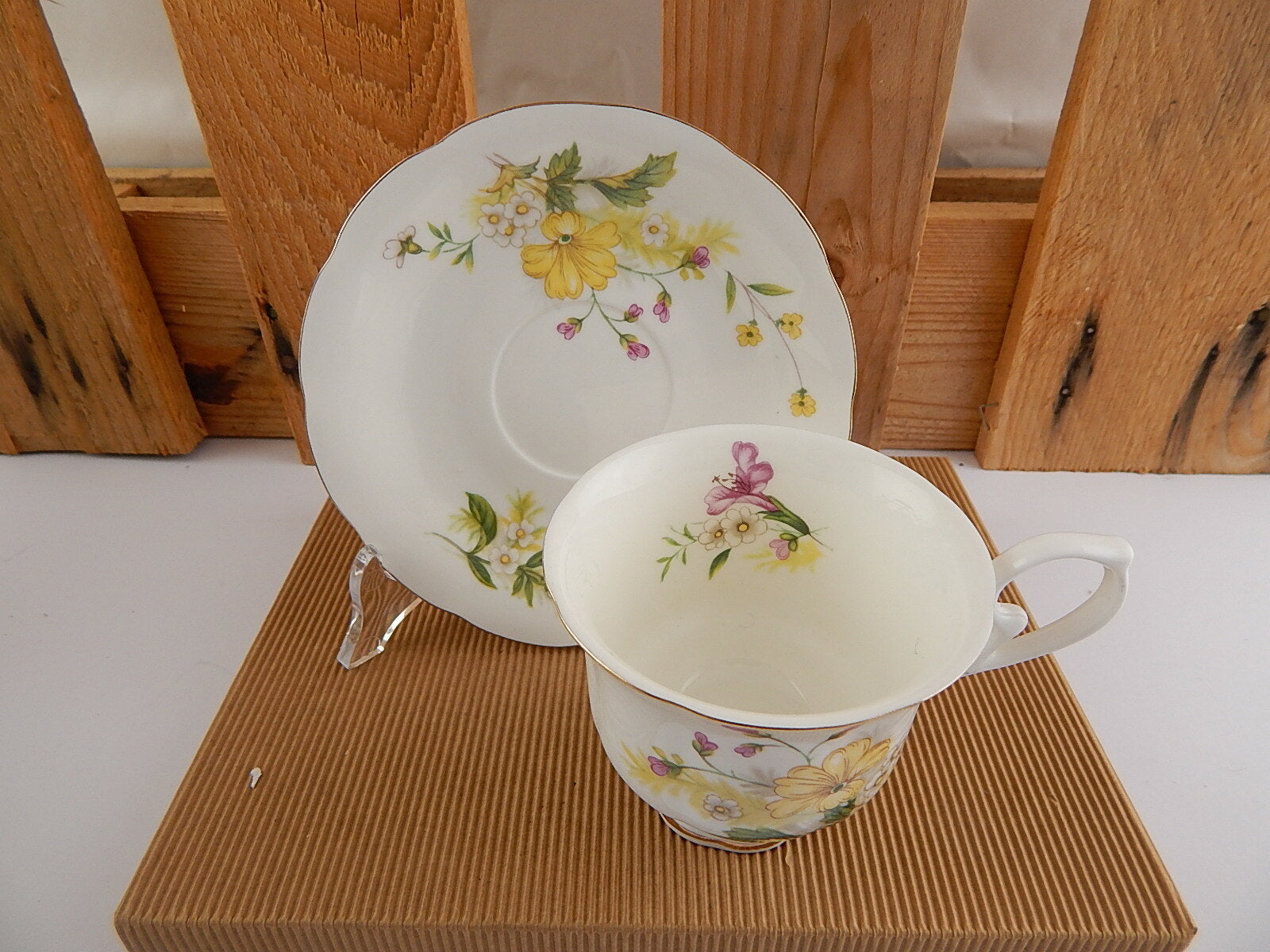 In questa inserzione viene presentata una tazza da tè vintage con relativo piattino della manifattura inglese Royal Wessex