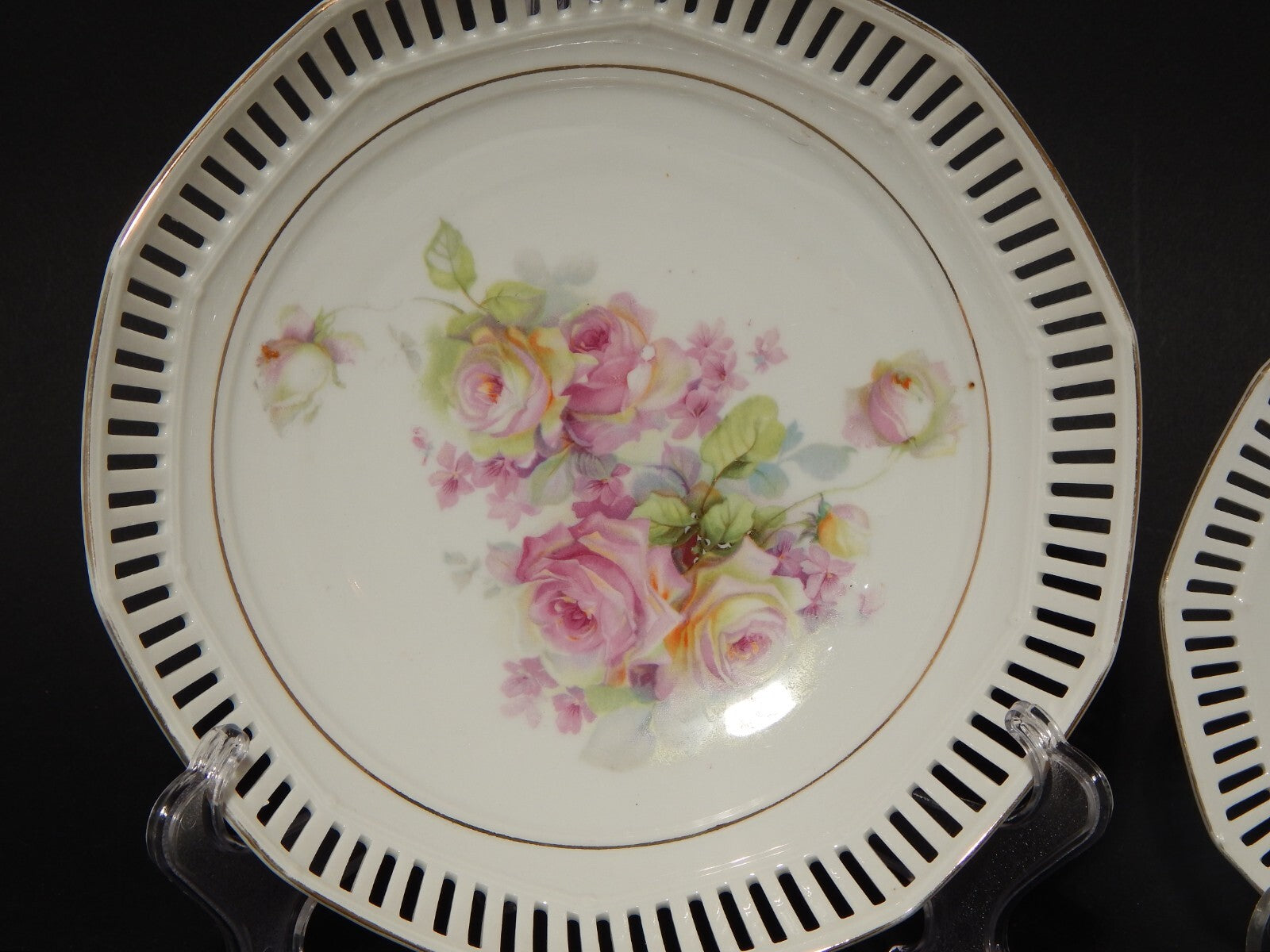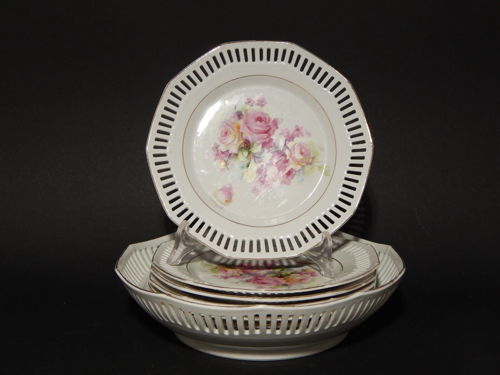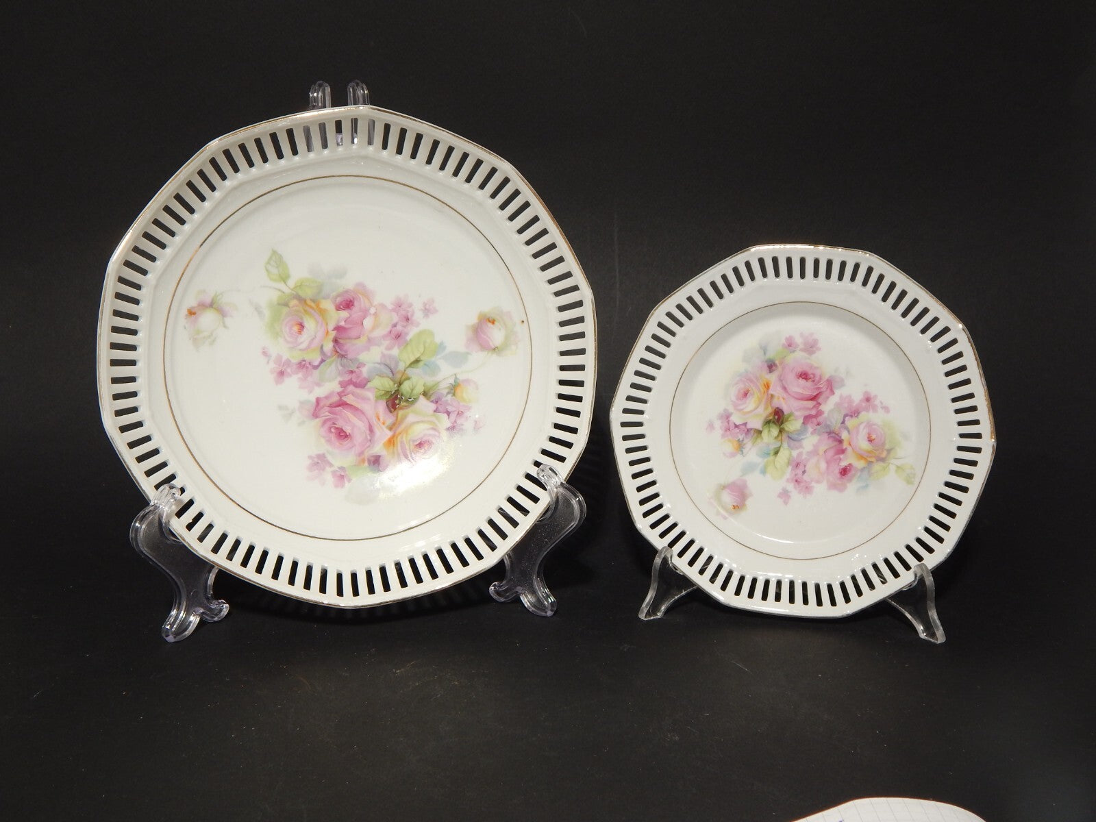 SCHUMANN BAVARIA PREZIOSO SERVIZIO DA DOLCE PORCELLANA TRAFORATA 1930 LE ROSE