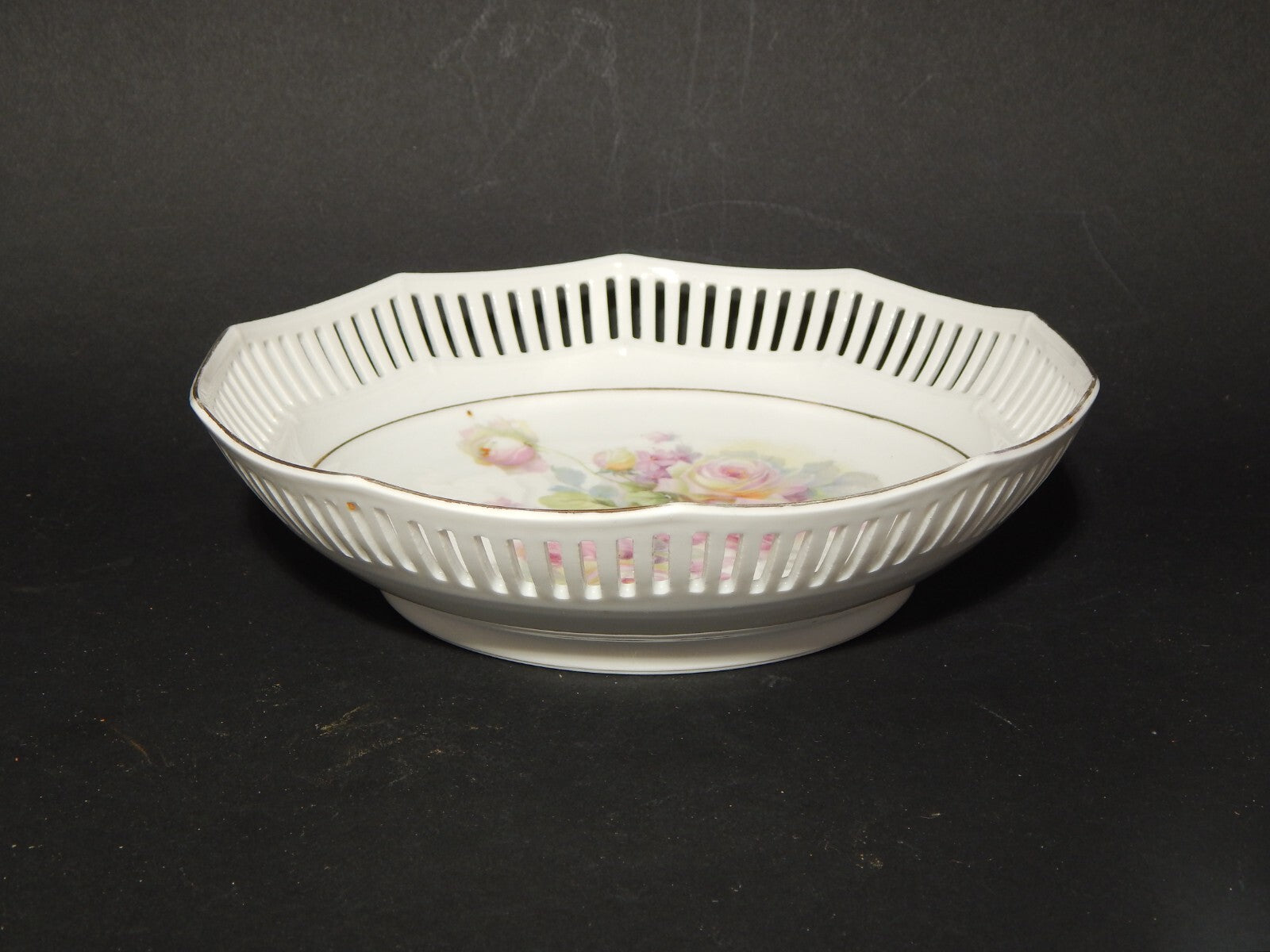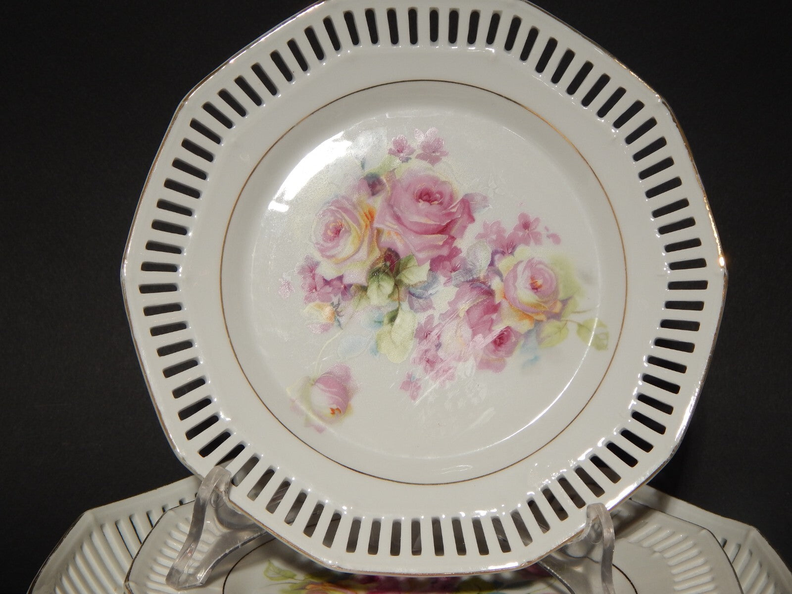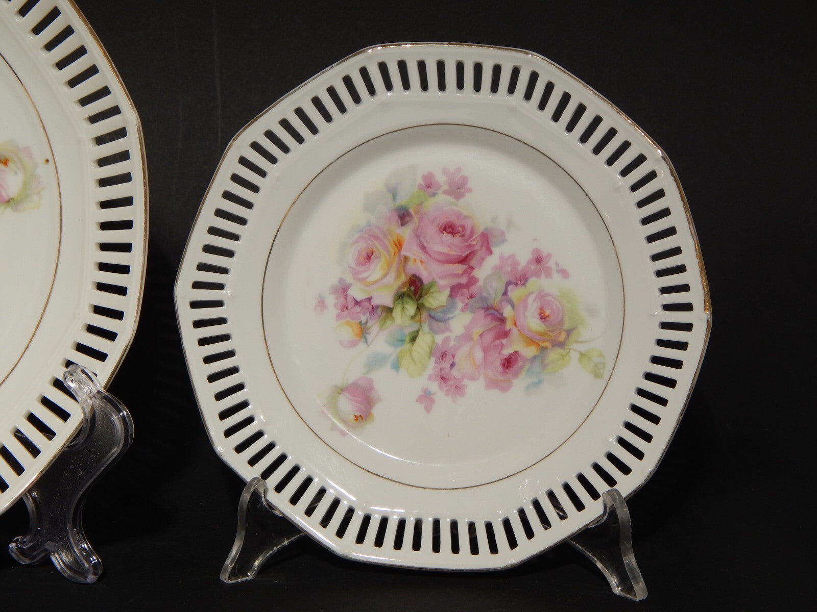 SCHUMANN BAVARIA PREZIOSO SERVIZIO DA DOLCE PORCELLANA TRAFORATA 1930 LE ROSE