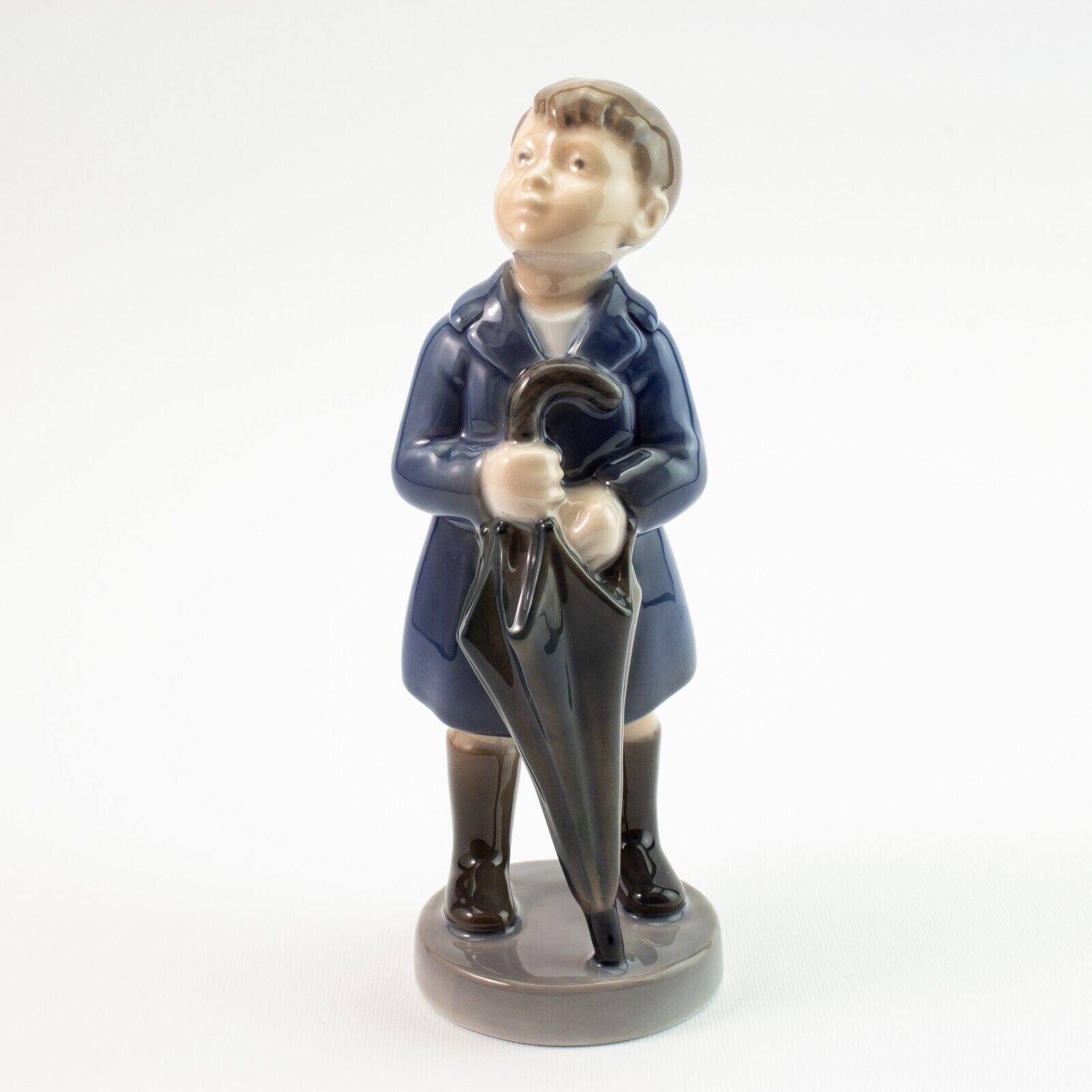 STATUINA PORCELLANA ROYAL COPENHAGEN "Aprile, Ragazzo con Ombrello" 4526 CM 17x7