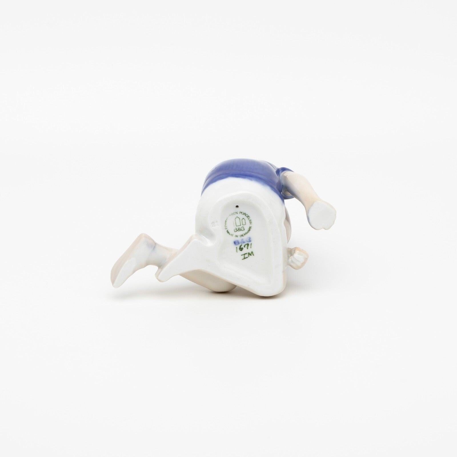 La statuina in porcellana della Bing&Grondahl si intitola "Bambino Triste" ed è identificata dal codice 1671.