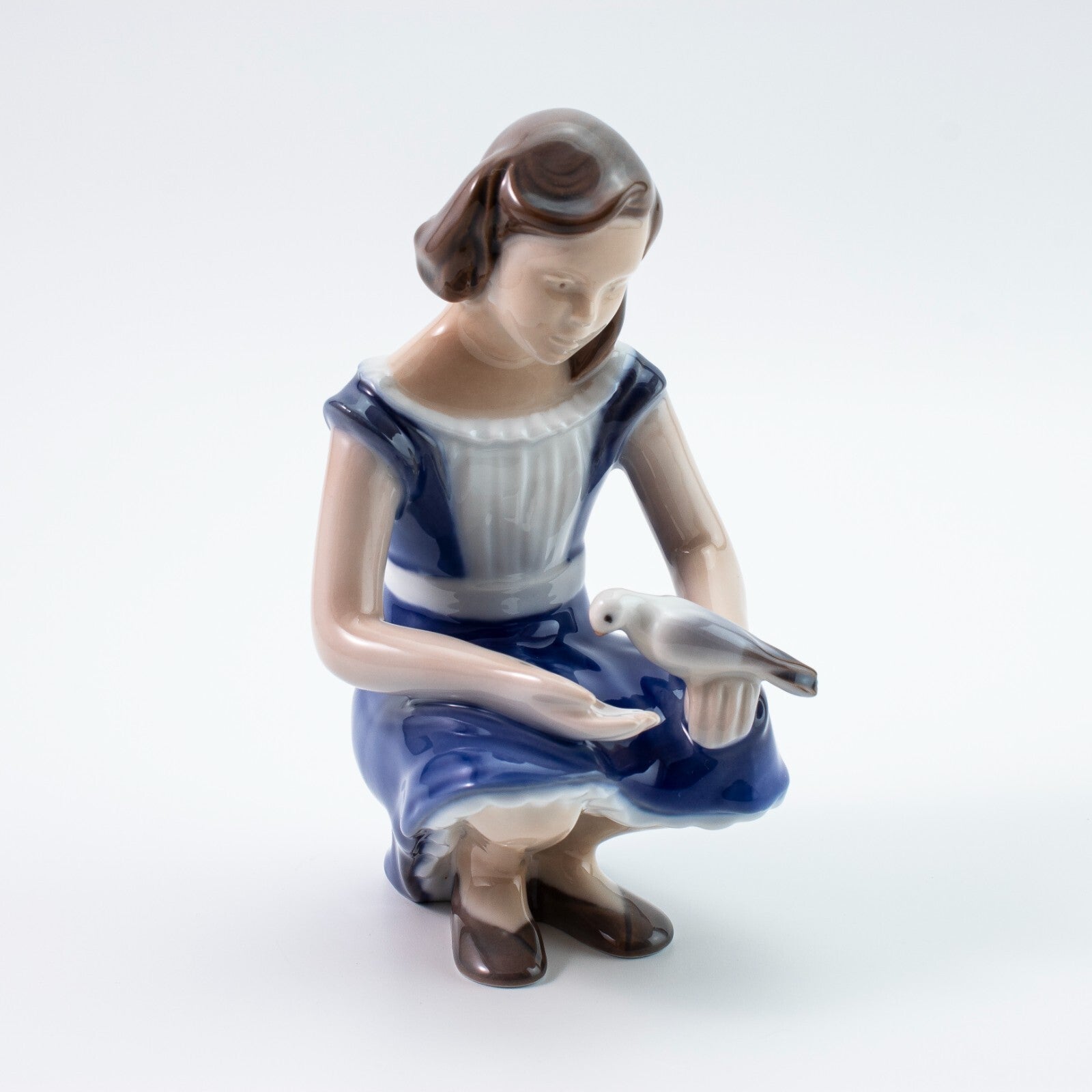 STATUINA PORCELLANA ROYAL COPENHAGEN BING&GRONDAHL "Ragazza con Colomba" CM 13x8