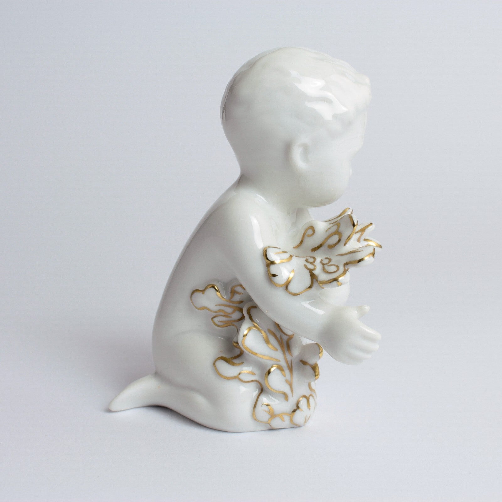 STATUINA PORCELLANA ROYAL COPENHAGEN BING&GRONDAHL "Ragazzo del Mare" CON ORO