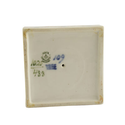 La statuina in porcellana della Royal Copenhagen si intitola “Fauno con Lucertola” ed è identificata dal codice “433”. Misura 21 cm. di altezza con un ingombro di 8,5 x 8,5 cm. La statuina è stata disegnata da Christian Thomsen e, come si evince dal marchio sotto la base, è stata prodotta tra il 1923 e il 1928.