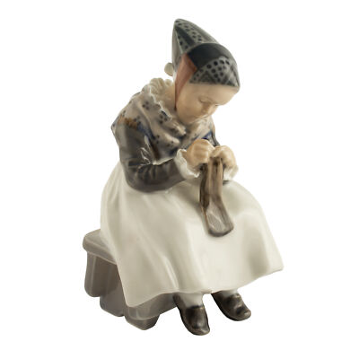 STATUINA PORCELLANA ROYAL COPENHAGEN "Ragazza di Amager Lavora a Maglia" 1314 CM 15