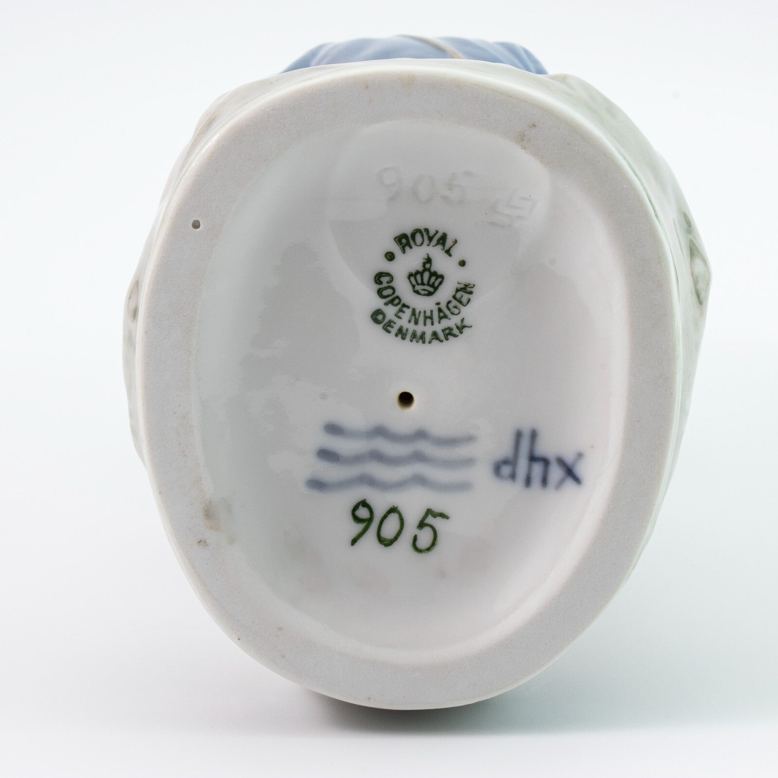 La statuina è stata prodotta in quantità limitata e a garanzia di autenticità reca il marchio della Royal Copenhagen, la Corona sopra le tre Linee Ondulate e le iniziali del pittore. Il marchio sotto la base varia a seconda del periodo di produzione e da questo si può quindi risalire all'anno in cui è stata prodotta la statuina.