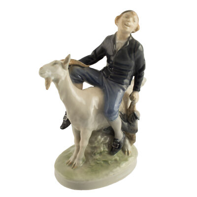 STATUINA PORCELLANA ROYAL COPENHAGEN "Ragazzo su Capra" 1228 ORIGINALE PRIMA SCELTA