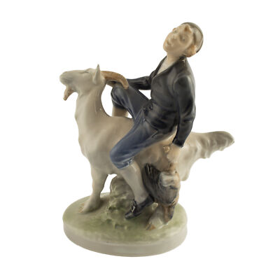 STATUINA PORCELLANA ROYAL COPENHAGEN "Ragazzo su Capra" 1228 ORIGINALE PRIMA SCE