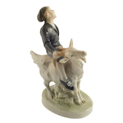 La statuina in porcellana della Royal Copenhagen si intitola “Ragazzo su Capra” ed è identificata dal codice “1228”. Misura 18 cm. di altezza con un ingombro di 14 x 8 cm. La statuina è stata disegnata da Christian Thomsen.