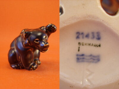 La statuina in porcellana della Royal Copenhagen, realizzata con la tecnica Stoneware, si intitola “Cucciolo Orso Bruno” ed è identificata dal codice “21433”. Misura 8 cm. di altezza con un ingombro di 10 x 7 cm. La statuina è stata disegnata da Knud Kyhn.