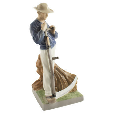 La statuina in porcellana della Royal Copenhagen si intitola “Uomo con Falce” ed è identificata dal codice “685”. Misura 25 cm. di altezza con un ingombro di 14 x 13 cm. La statuina è stata disegnata da Christian Nielsen.