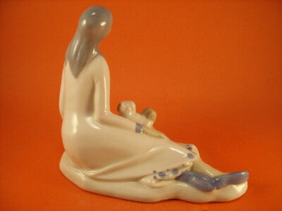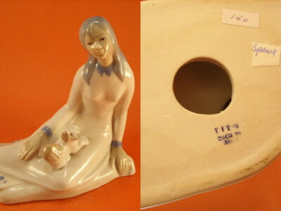 STATUINA PORCELLANA SPAGNOLA MANIFATTURA TITO "Ragazza con cucciolo"