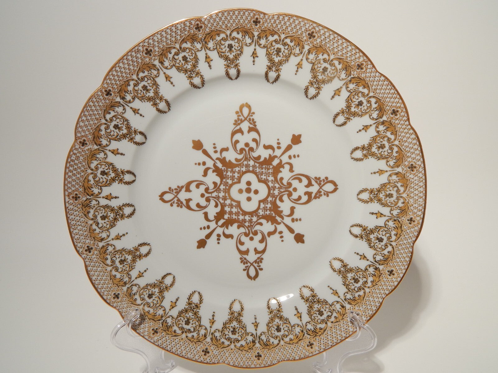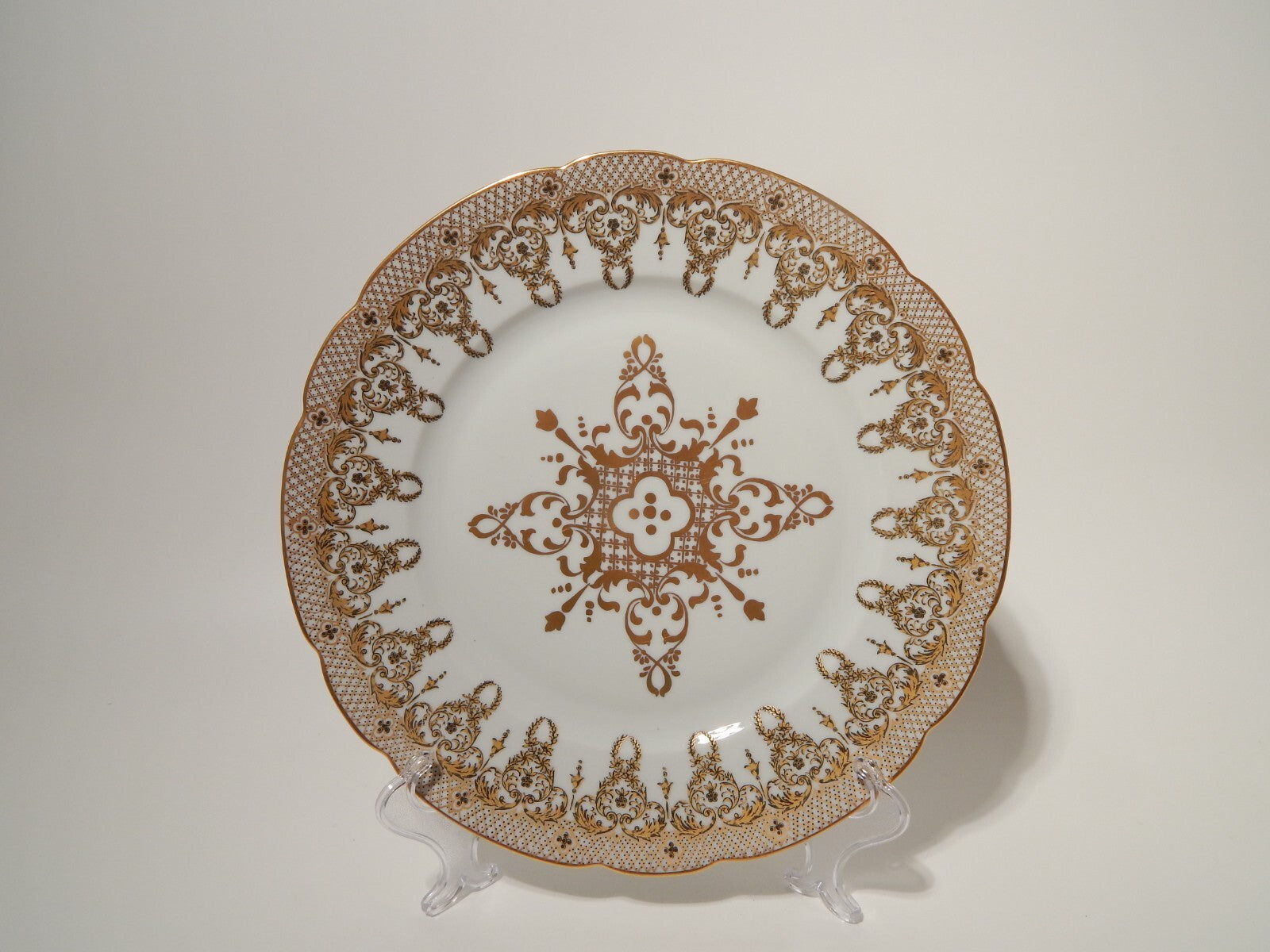 Il piatto in porcellana di altissima qualità è decorato a mano nel famoso disegno Colbert e misura 26 cm di diametro