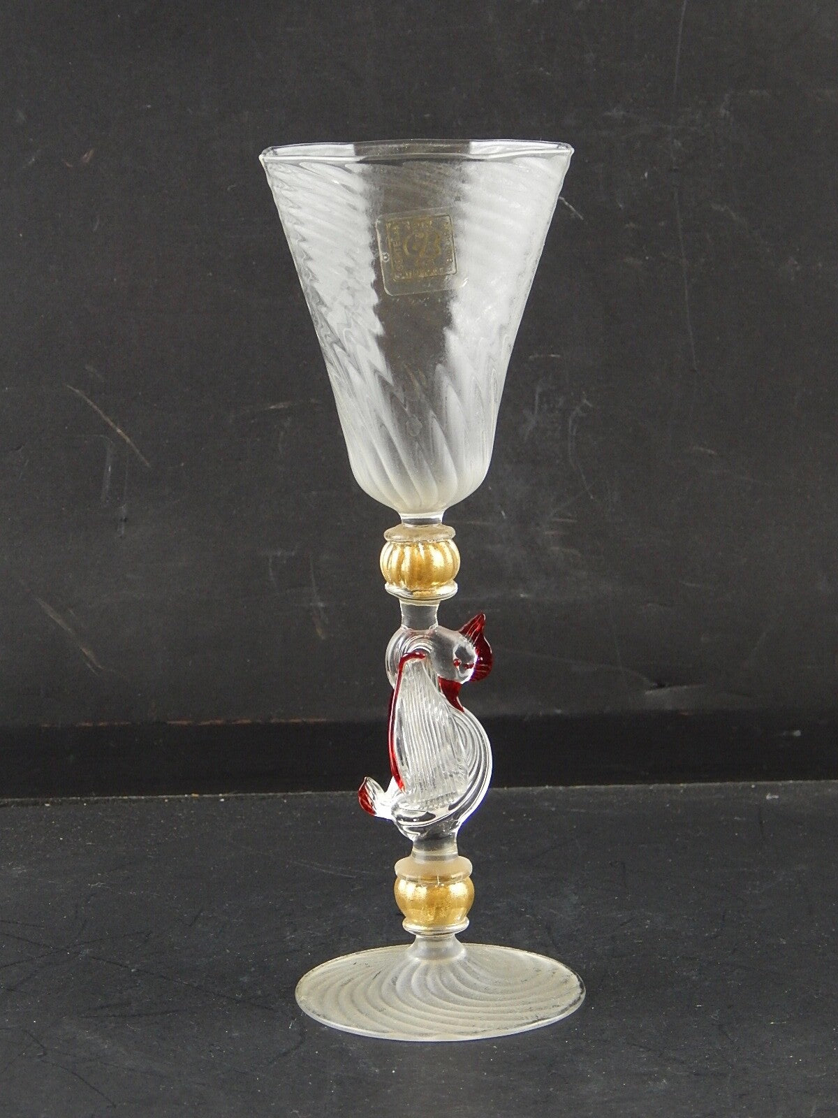 TIPETTO CALICE MURANO VETRO SOFFIATO RIGATO CIGNO FIRMATO CORTELLA & BALLARIN