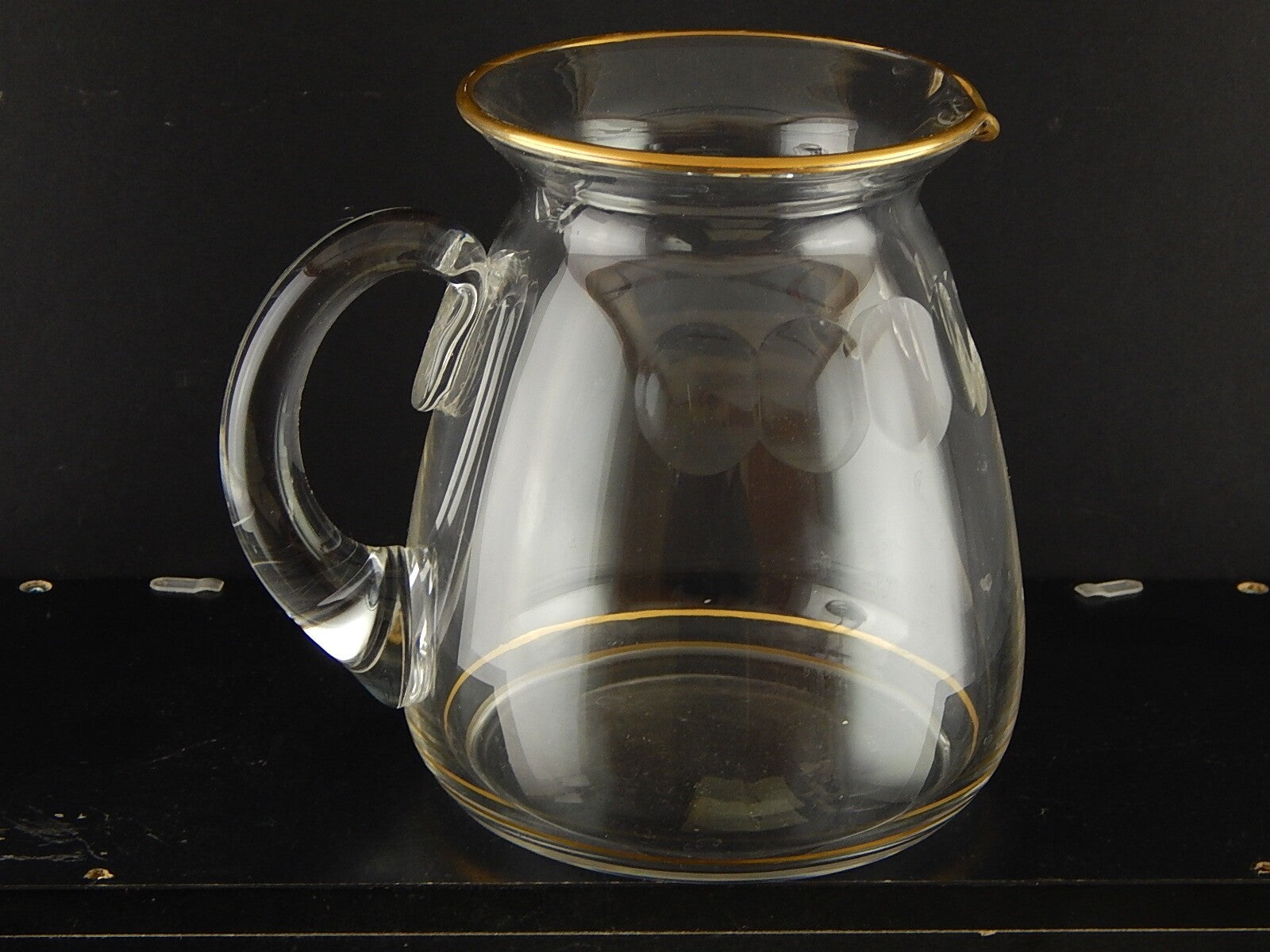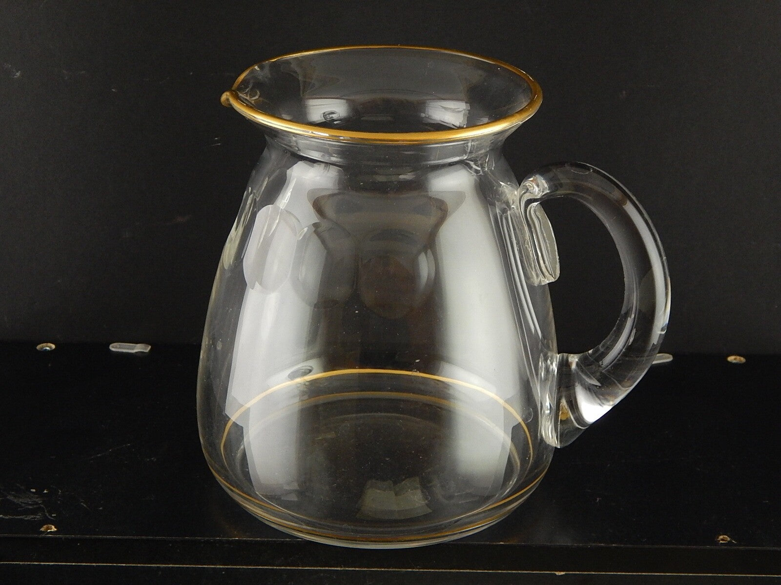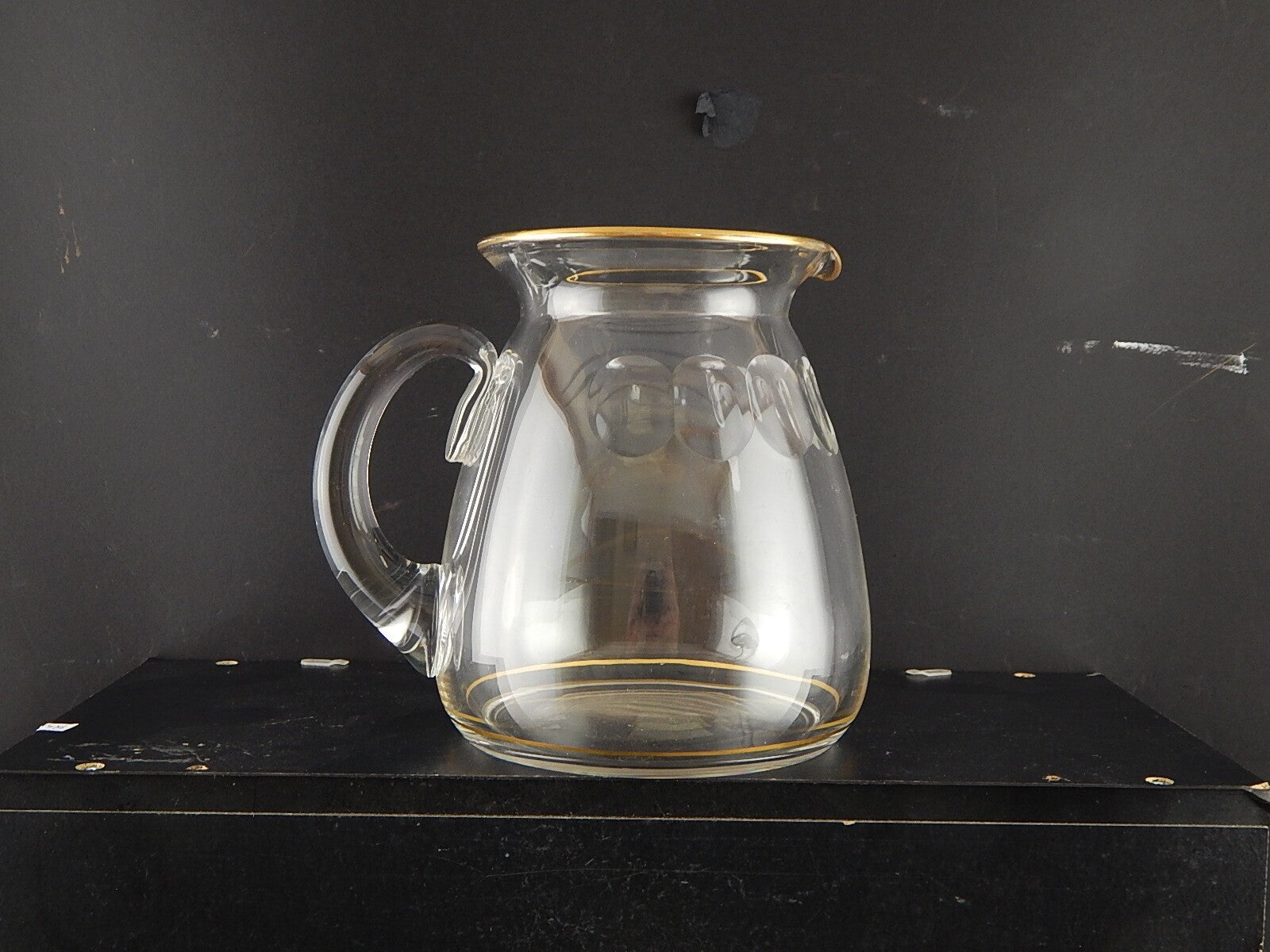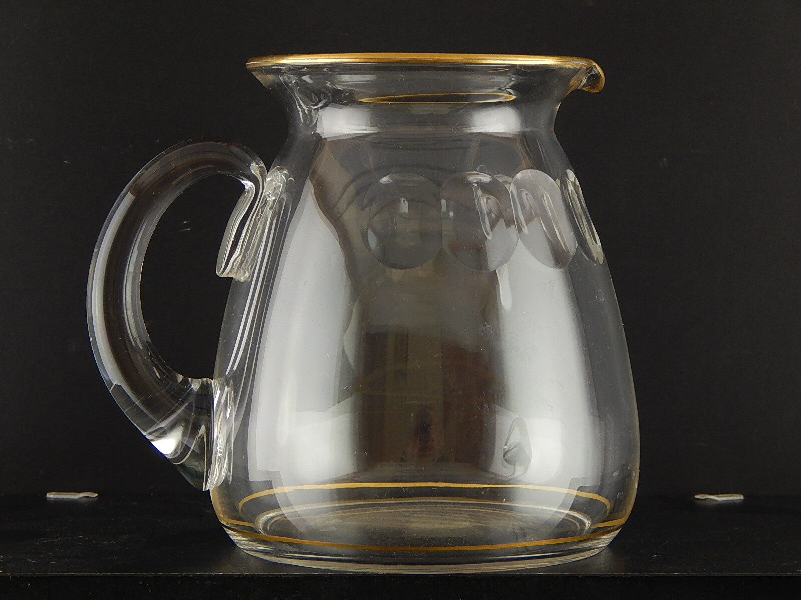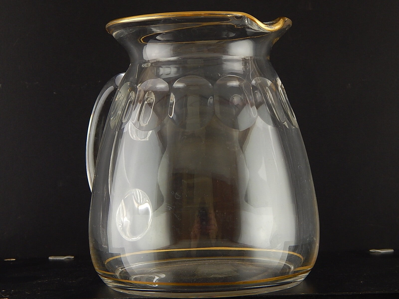 In questa inserzione viene presentata una caraffa di cristallo molato con profilo in oro 24 carati realizzata dalla rinomata cristalleria Belga Val Saint Lambert