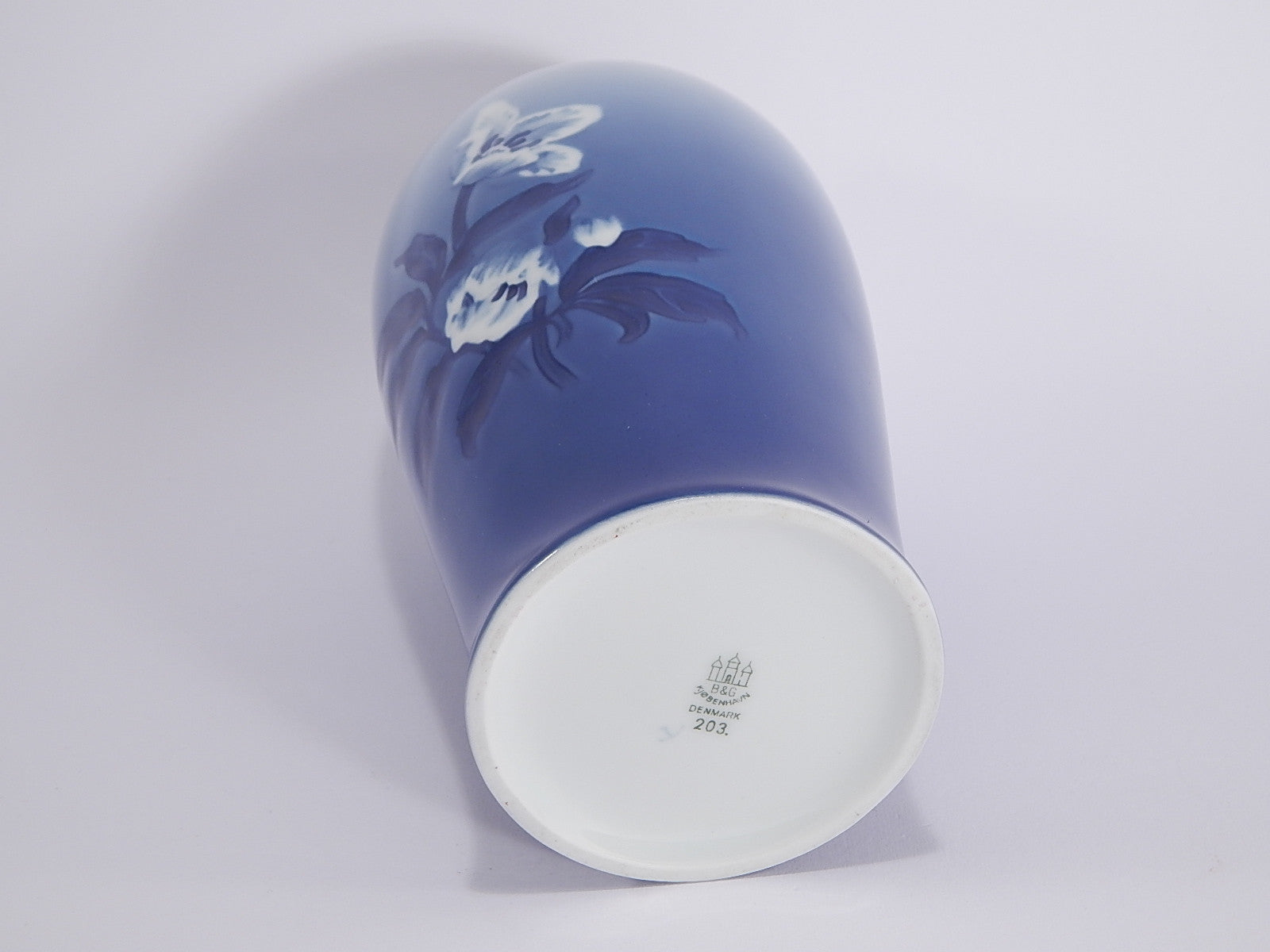 A garanzia di autenticità il vaso reca il marchio della Bing&Grondahl con le Tre Torri, ispirato allo stemma della città di Copenhagen e noto in tutto il mondo come simbolo delle porcellane Danesi, e le iniziali del pittore.