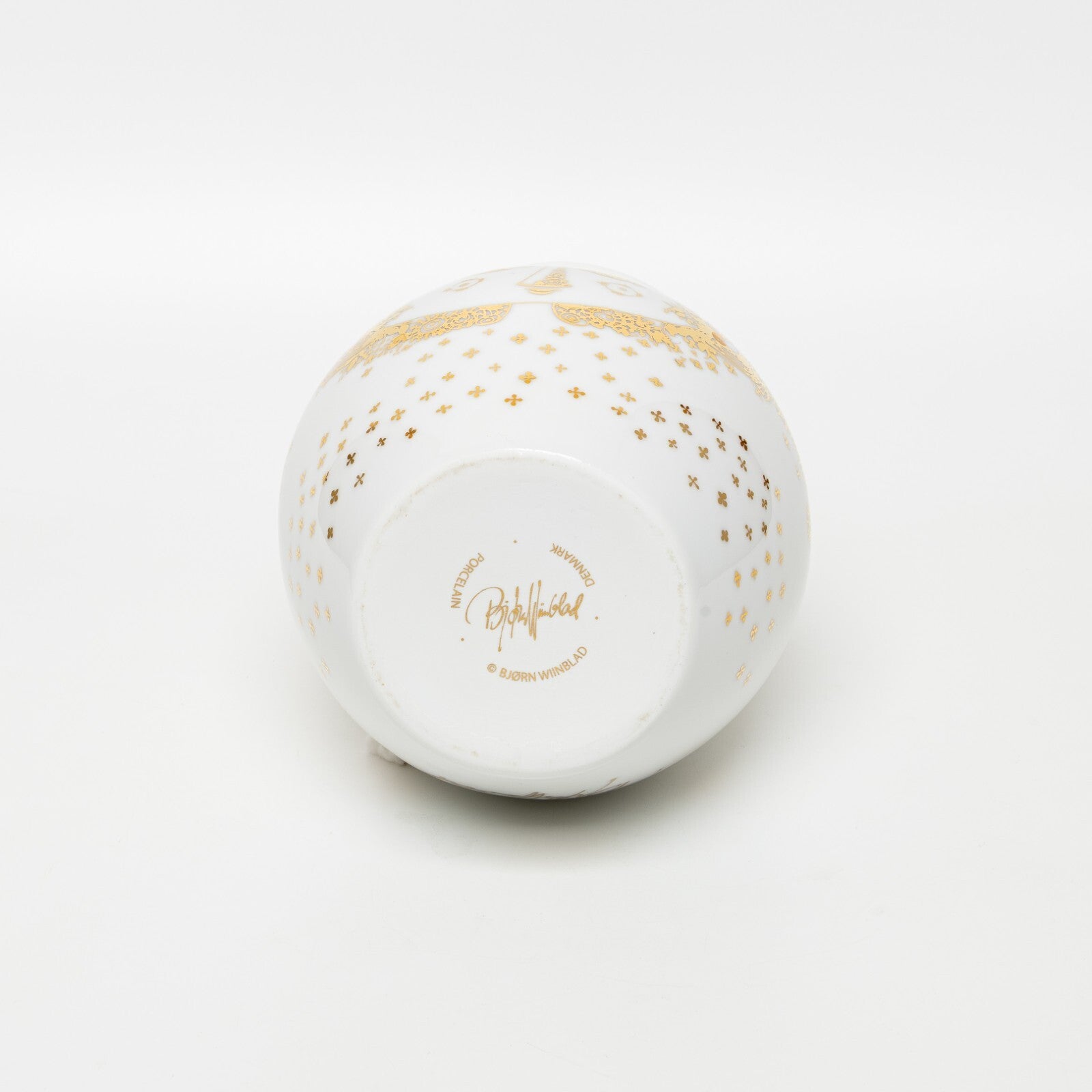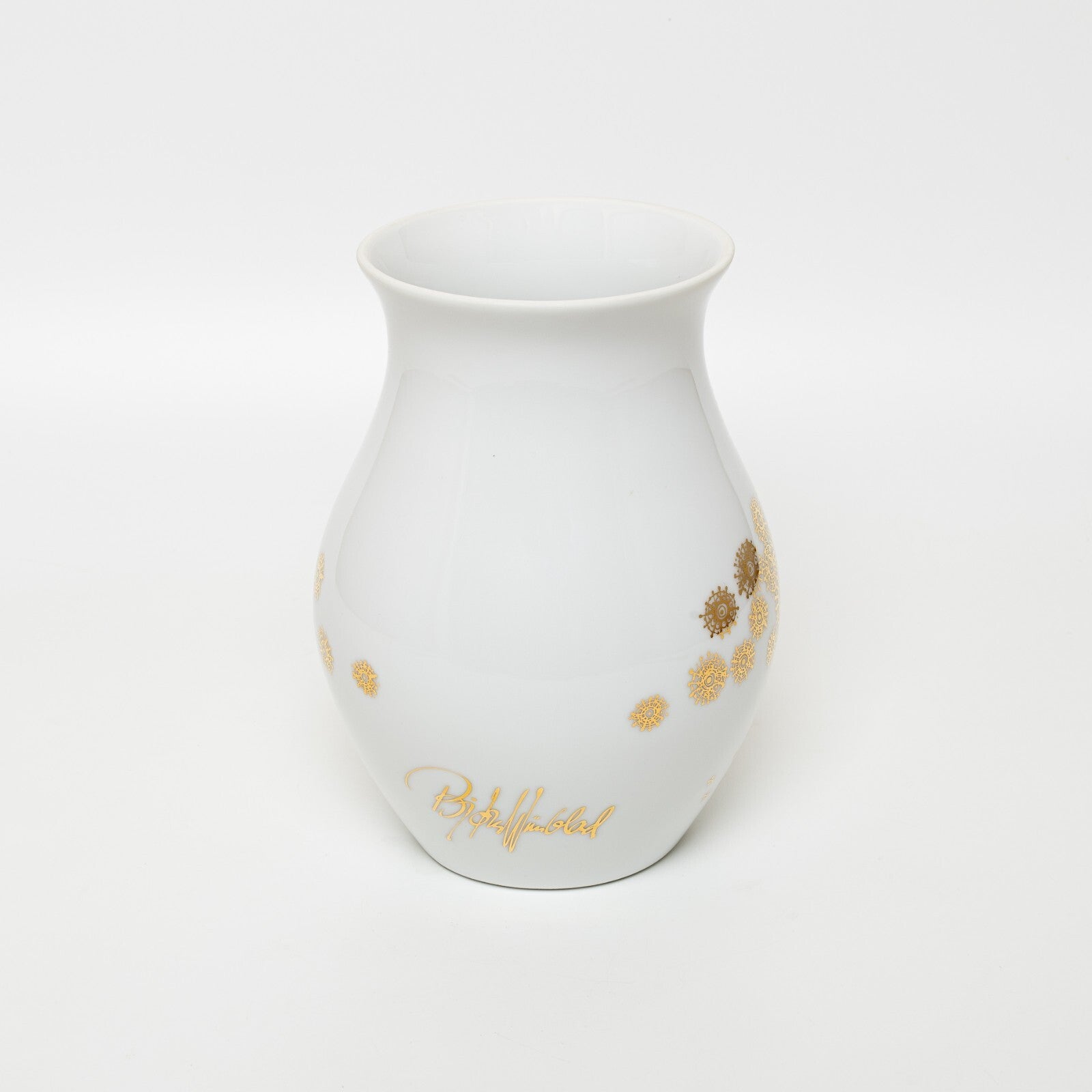 Vaso in porcellana bianca con decoro in oro della Rosenthal collezione Felicia del designer Bjorn Wiinblad.
