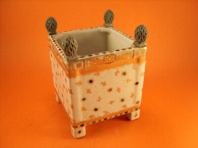 In questa inserzione è presentato un vaso in porcellana dipinto a mano e rifinito in oro zecchino con 4 punte in bronzo realizzato da Cristina Cano by Nelson.